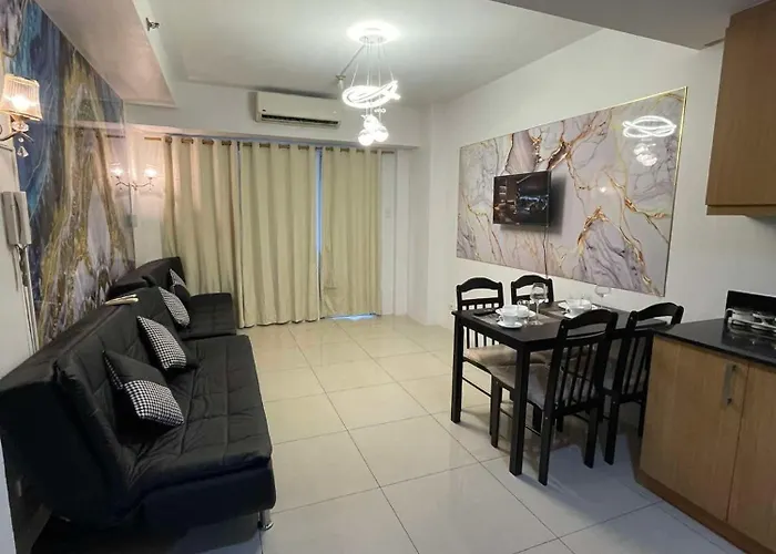 寝室1室のマニラ市1158-2Br 6Beds 2 Extra Mattress 2-Sofaアパートメントから歩いてたった5分離れたル ・パビリオンなどの観光スポットに近接しています。 ビジネスやレジャーのお客様のニーズに合わせてWiFiと駐車場を提供しています。